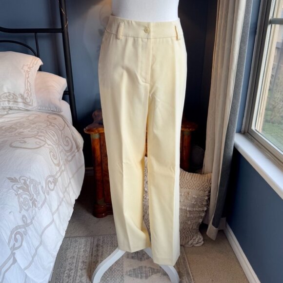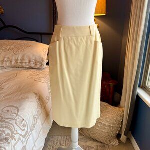 New with tags vintage early 00s buttermilk cream belted suit by Origins, size 4, fits like a modern size 2. Suit jacket is single breasted and belted. 99% wool 1% lycra so has some stretch. Made in Canada. Skirt is not with tags as there was a scuff mark I had to get out so it is never worn but washed gently in cold water and laid flat to dry. Cat friendly, nonsmoking home.