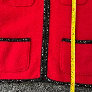 Vintage Red 100% Wool Oversized Jacket with Black Trim and Bead Details