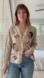 Vintage 100% Cotton Cat Patterned Tan Sweater cardigan small to medium