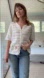 This adorable white button-up knit top is perfect for transitioning to fall. Its delicate design adds a touch of whimsy to your wardrobe.