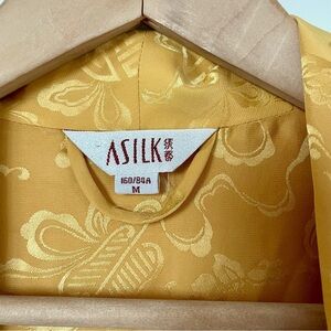 Vintage 100% Silk Chinese Dragon Embroidered Robe Kimono Red and Gold. Brand is A Silk. 100% silk. Embroidered dragon on the back. Size medium. Excellent condition, just missing the belt.