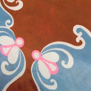 Beautifully vibrant vintage colors of pink, brown and turquoise swirl together to make this scarf not only unique but truly retro-looking