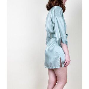 Vintage 100% Silk Matching Robe Chemise Slip Mini Dress Set Sexy Slit Lingerie