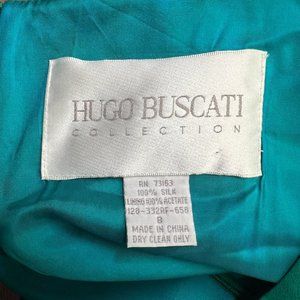 Stunning vintage silk mini dress by Hugo Buscati Collection. This sheath dress features a fitted silhouette, long sleeves, a v-neck, and a small slit at the hem. Absolutely perfect piece for year-round wear! This beautiful dress can be worn to weddings, picnics in the park, Sunday brunch, garden parties, date nights, drinks with friends, or on a romantic getaway vacation. Guaranteed to get you so many compliments when you wear this piece!