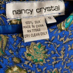 Vintage 100% Silk Nancy Crystal Dress Women's M Paisley Print Spring Summer 90s
