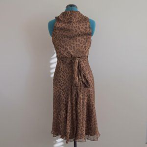 Vintage 100% Silk Ralph Lauren Leopard Print Wrap Dress Sleeveless V-Neck