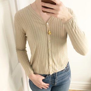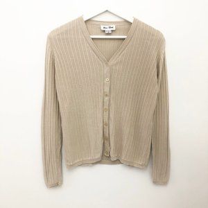 Vintage 100% Silk Ribbed V-Neck Cardigan Sweater