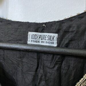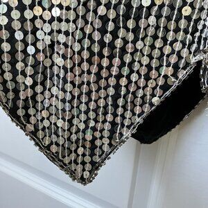 Vintage 100% Silk Sequin Beaded Butterfly Crop Top Y2K Cropped Black Silver