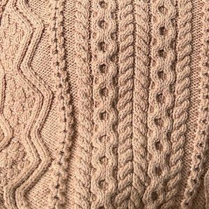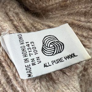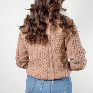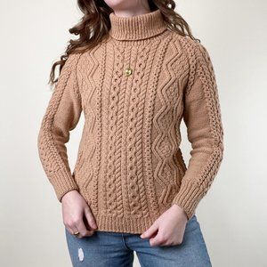 Vintage 100% Wool Cable Knit Turtleneck Oversized Sweater Preppy Fisherman Camel
