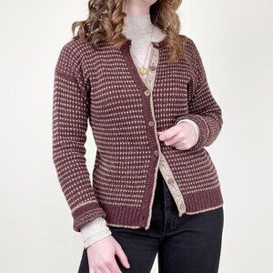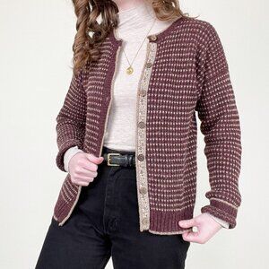 Vintage 100% Wool Embroidered Lace Cardigan Sweater Fair Isle Cottagecore Rustic