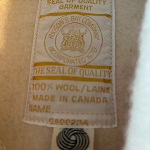 I have never seen such a pristine HBC coat in this condition. The button have minimal wear but other than that it is 100% gorgeous. The price is fantastic as this is a limited series made jacket and only a few were made in Canada at the time with this pattern and color (soft cream/beige).