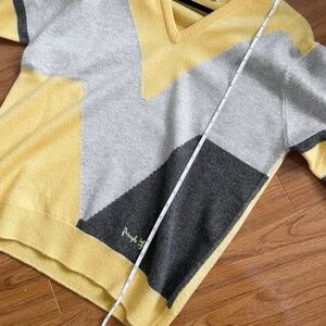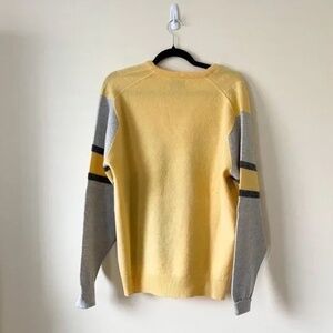Vintage • 100% Wool Pringle of Scotland Yellow and Gray Geometric Stripe Sweater