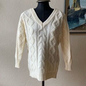 Vintage 100% acrylic 1970s chunky knit cream coloured sweater size small