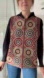 This stylish sweater vest features a vibrant crochet pattern, perfect for adding a unique touch to your wardrobe. The multicolor design includes shades of red, blue, and tan, making it versatile for fall.