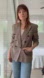 Classic wool blazer with double breasted buttons, front pockets, in a navy, brown, and tan micro houndstooth plaid. Mouthful sorry.