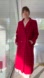 Maxi red wool coat with red buttons, pockets, notch lapels (can also button all the way up). Shoulder detail. Heavy, fully lined.