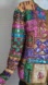 Incredible vintage all-over sequin jacket on 100% silk. Covered in vibrant geometric patchwork patterns in jewel tones — purple, green, gold, teal, pink, and copper. Features hook-and-eye front closures and a soft boxy silhouette. Fully lined. A rare, head-turning piece perfect for parties, holiday looks, or collectors of vintage glam.