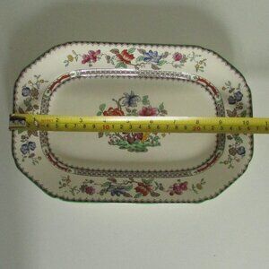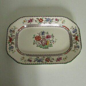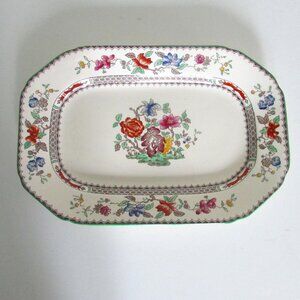 Vintage 10.5" oblong serving plate, Chinese Rose, Copeland Spode, SMALL CHIP