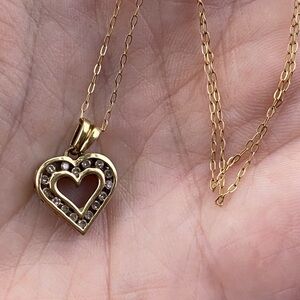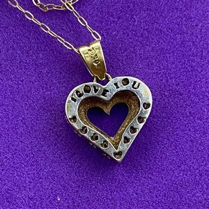 💛 Vintage 10K Gold Diamond Heart “I Love You” Pendant Necklace