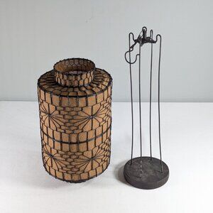 Vintage 13" Chinese wire bound temple lantern candle holder, hanging patio light