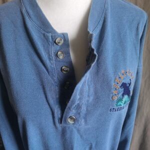 Vintage 1/4 button soft Cotton Crewneck Shirt Ranch embroidery Logo Worn Faded