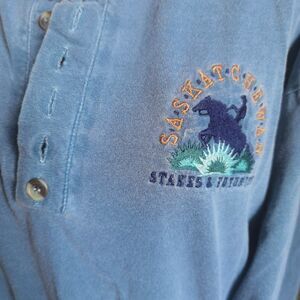 Vintage 1/4 button soft Cotton Crewneck Shirt Ranch embroidery Logo Worn Faded