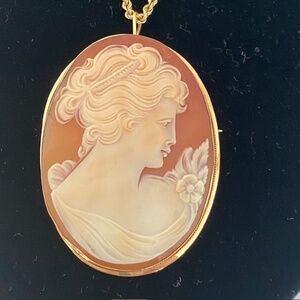 Vintage 14K Gold Victorian Carved Shell Cameo Brooch/Pendant and Gold Chain
