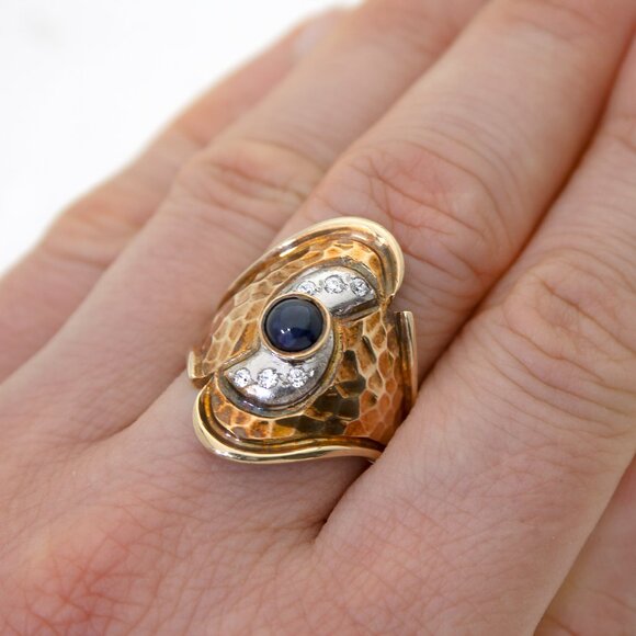 Vintage 14K Yellow Gold Sapphire Cocktail Ring SZ 9.25, 6.50 gr, Appraised $2000