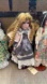 Vintage 16.5” Porcelain Doll with Pink Purple Cream Dress Ruffles Stand included