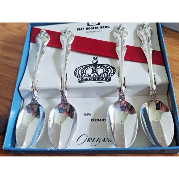 Vintage 1847 Rogers Bros. Silverplate Demitasse Spoon Set(4) original box 1964