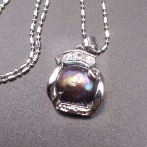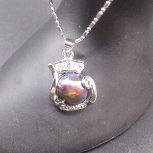 Vintage 18k GP Tahitian Black Pearl Pendant & 18k GP Necklace