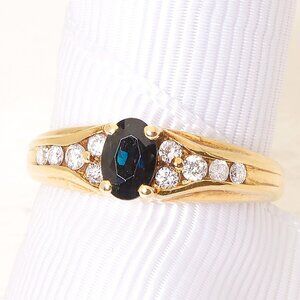 Vintage 18kt Yellow Gold Natural Sapphire and Real Diamonds Ring Size 6.75 3.8gr