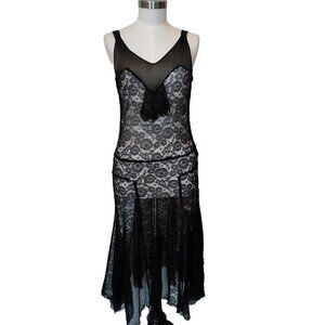 Vintage 1920s Black Sleeveless Dress w' Gored Bottom Panels XS to S