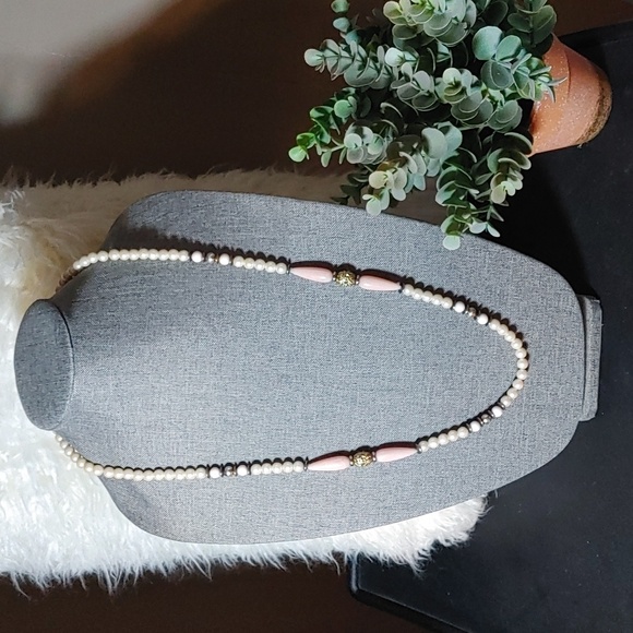Vintage 1928 Signed Faux Pearl with Pink Teardrop Beads