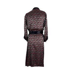 Silver and burgundy jacquard smoking jacket.