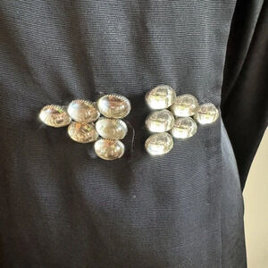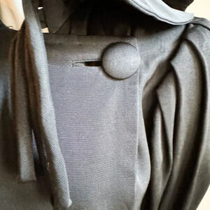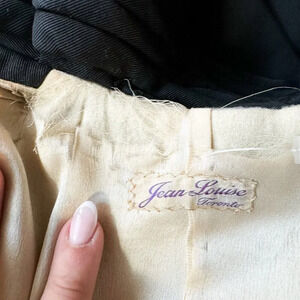 Elevate your wardrobe with this stunning vintage Jean Louise statement sleeve fitted waist maxi coat in size small. The timeless black color and tailored look of this coat make it a must-have for any fashion-forward woman. The coat is crafted from high-quality material that is both durable and comfortable to wear.