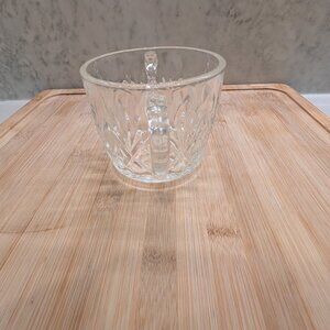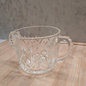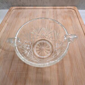 Prescut clear glass sugar bowl in a pineapple pattern.