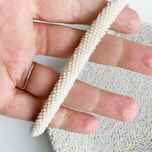 The floral crosstitch pattern is fully beaded, giving it a stunning multi-color look that will complement any outfit. The handmade design adds an original touch, making it a one-of-a-kind piece.