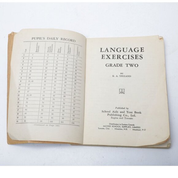 Vintage 1943 School Language Exercises Book Grade Two School Aid Elgin Simcoe