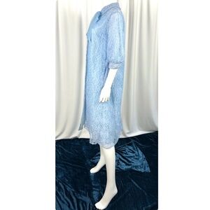 Vintage 1950’s 1960’s Another ‘Campus Casuals’ Creation • Lace Babydoll Bed Jacket in Periwinkle Blue • Chiffon Bow Ribbon • Collared • M/L