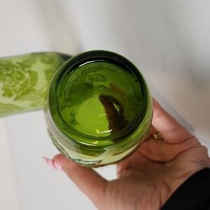 Vintage 1950s Avocado Green Raised Leaf High Ball Tumblers Glasses MCM Roses