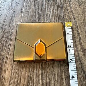 Vintage 1950’s Elgin American Powder Compact Mirror Brass Large Topaz Rhinestone