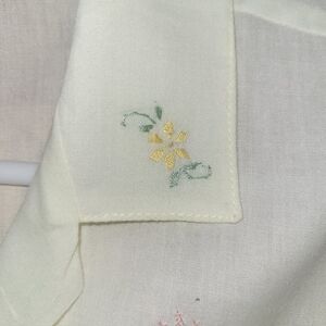 Vintage 1950s Embroidered Pale Yellow Blouse Shirt Short Sleeve Size (L?)