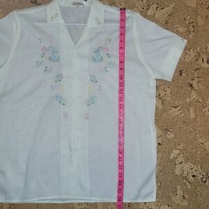 Vintage 1950s Embroidered Bouse Shirt Short Sleeve Cream