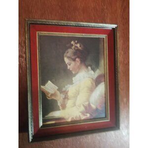 Vintage 1950s Fragonard Young Girl Reading Limited Edition #1210 Red Velvet Trim