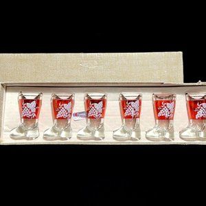 Vintage 1950s Lubiana Kristrall Italy Cranberry Flash Boot Shaped Shot Glasses