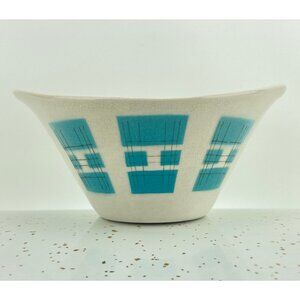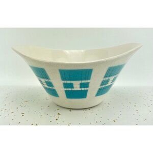 Vintage 1950s Primastone Danube bowl, teal, cream, grey, MCM decor