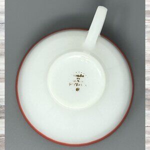Colour: White with flamingo pink striped rim. Stripe is a pinkish red.