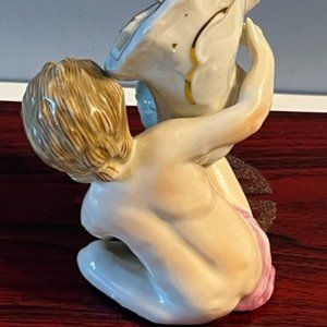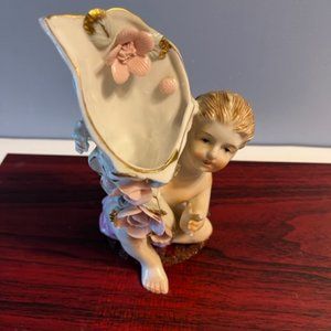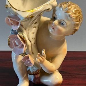 Vintage 1950's mid century Ucagco Japan Trumpet Vase Fine Porcelain Cherub *READ