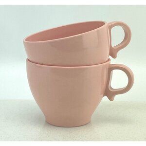 Vintage 1950s pink Melmac tea cups, Melamine ware pink mugs, pair